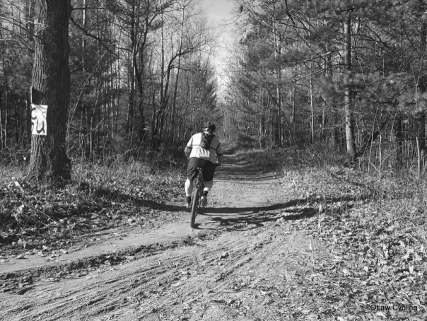 We were heading out to the Pro start of the Iceman Cometh when we turned onto a dirt road to try and catch a glimpse of the last few riders leaving from the earlier starts. The sun was out but it was still cold enough to get you shivering after a few minutes out of the car. Where the trail crossed the dirt road we saw a minivan pulled over and a man in Lycra pulling out parts from the back. Bent over a frame, the man was fixing a cable that had pulled out and got caught in the cassette somehow. I’d never seen anything like it. Lucky, the sixty or so year old man had a spare wheel in the back and a wife willing to drive out to some lonely road and hand over a wheel.