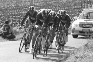 Last year, Cadel Evans won the race and went on to politely win the Tour de France. As a result, some teams opted to split squads, as it were, and send a strong contingent to both Paris-Nice and T-A. For some teams, like GreenEdge, the A team was assembled to T-A, built around sprinter Matty Goss, with some of the teams’ climbers like Simon Gerrans, sent north to Paris. Goss has a solid compliment of leadout men that may be enough to take some sprint wins, but GreenEdge is already taking the race by the nose. Today, GreenEdge won the team time trial over some great specialists, including the Fabian Cancellara and his RadioShack squad. Garmin-Barracuda, the winners of last year’s TTT at the Tour, were heavy favorites but had to settle for third, just behind RadioShack and given the same deficit of 17 seconds.