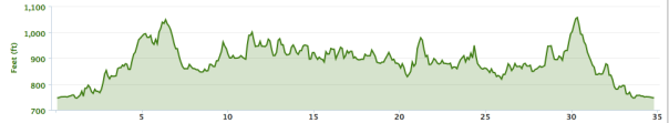 Above is the course profile. It’s quite helpful to remember at what mile point the bigger climbs come. This is the 2011 version and is missing data from the new section, but you’ll get the general idea. Using last year’s route, I marked down the climbs at 7.5 miles, 18 miles, and 26 miles to be ready and well-placed when the road tilted upward. The first, famous and perhaps most important climb comes just two miles into the race, so there’s no need to write that down. It’ll be on you in a hot second. Here it is already…