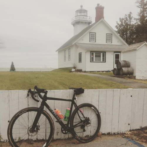 I had planned on calling in the Big Guns Saturday, but Brad White was sick and Sean Kickbush had to be a parent instead, so I rolled solo, fueled by a slice of pie and extra cup of coffee. I tried East Shore but the crosswind was getting obnoxious, so I climbed past Chateau Grand Traverse and went to the west side of the Peninsula to make it out the Lighthouse. I love climbing. I’d rather climb forever than go into a headwind all day, but luckily I could dip, duck, dodge the wind to the 45th parallel today and pause for a photo opp.